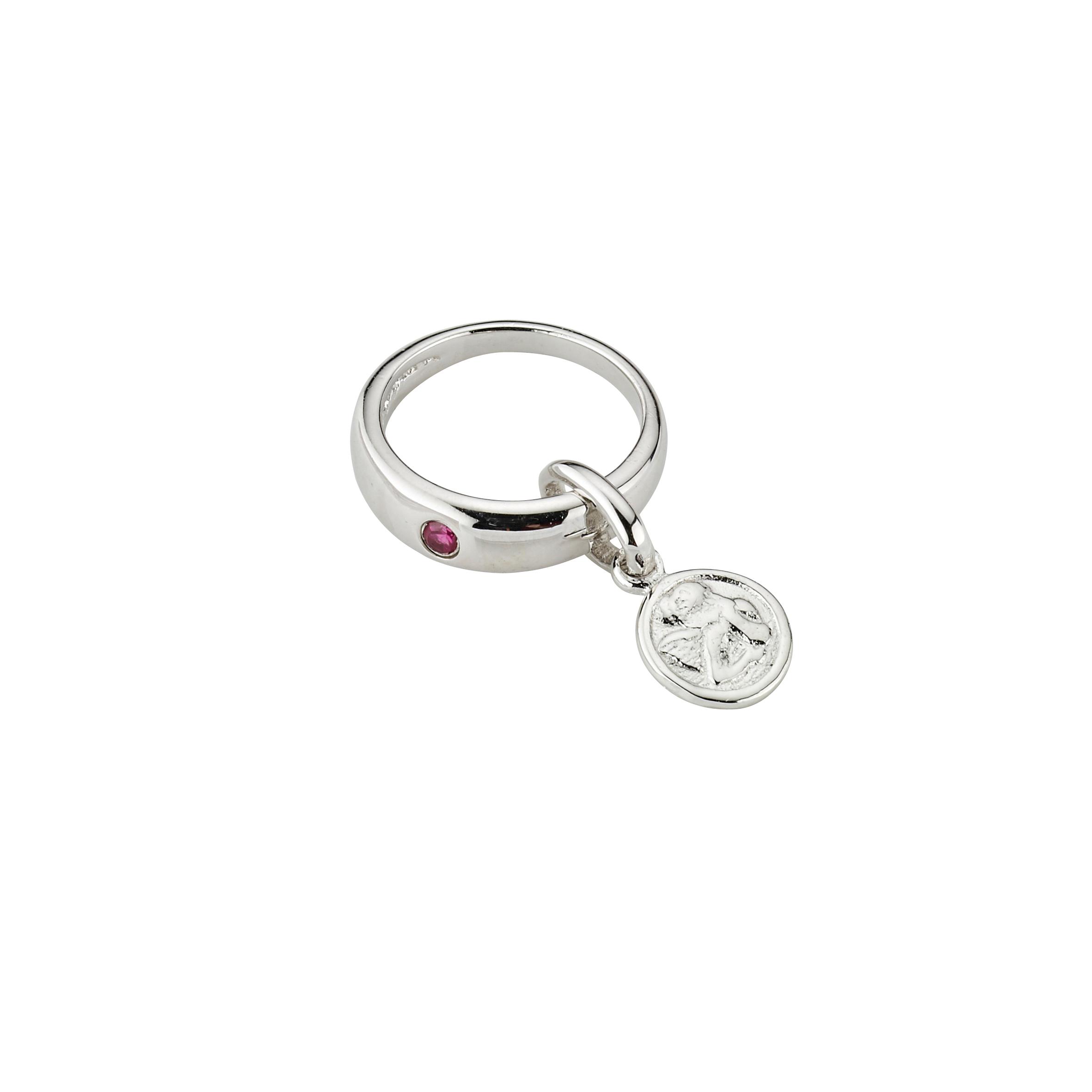 925/- Silber rhodiniert poliert Zirkonia, rot Taufring mit Schutzengel Ø 11,5 mm